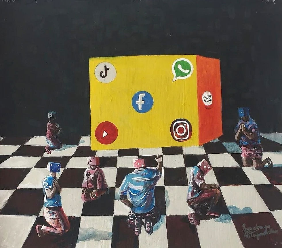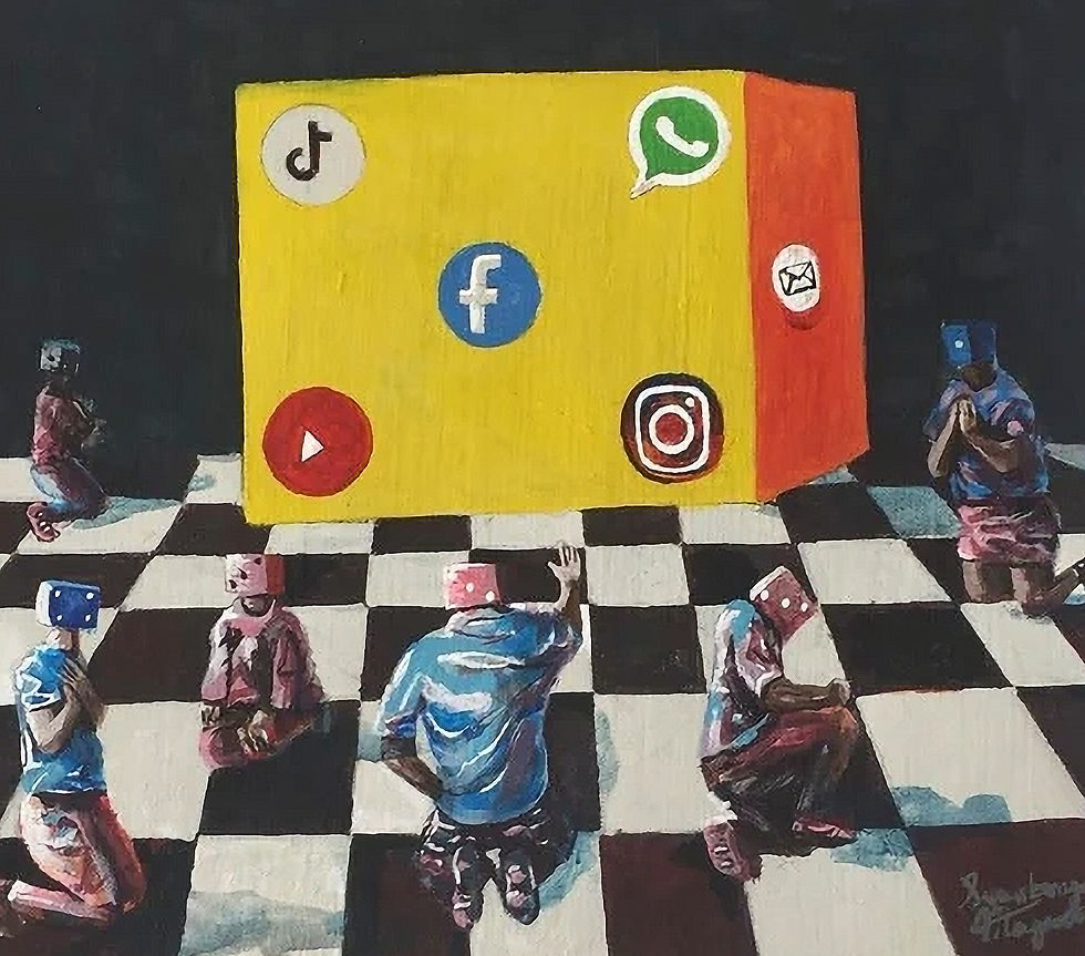 Gender roles in South Africa has been shaped by various historical, cultural, and economic factors and they vary significantly across different communities and time periods. To highlight these roles, Siya's work is also inspired by the landscape of his homeland, the rural land and mountains of Eastern Cape, South Africa, depicting women engaged in work while men watch.